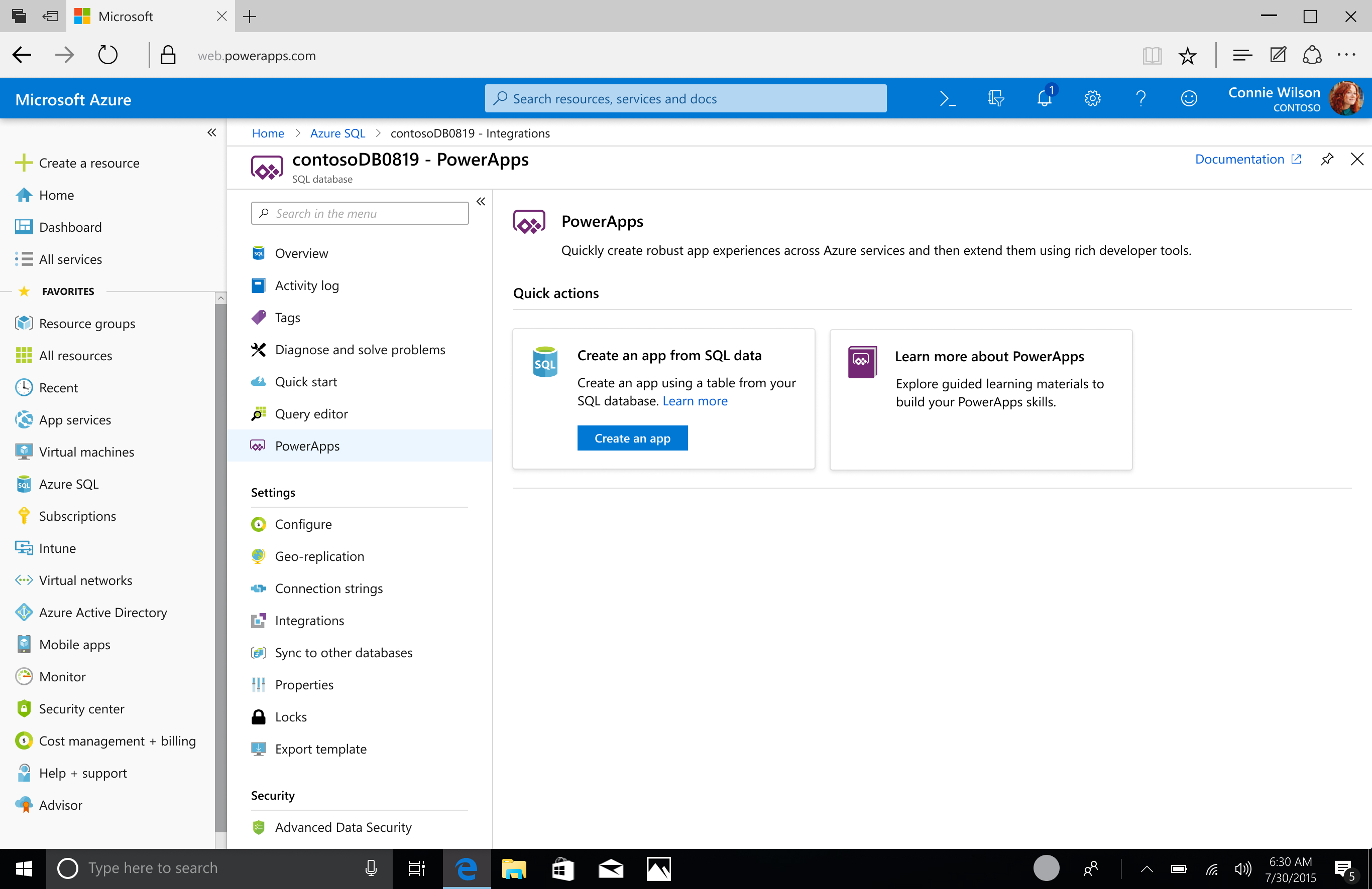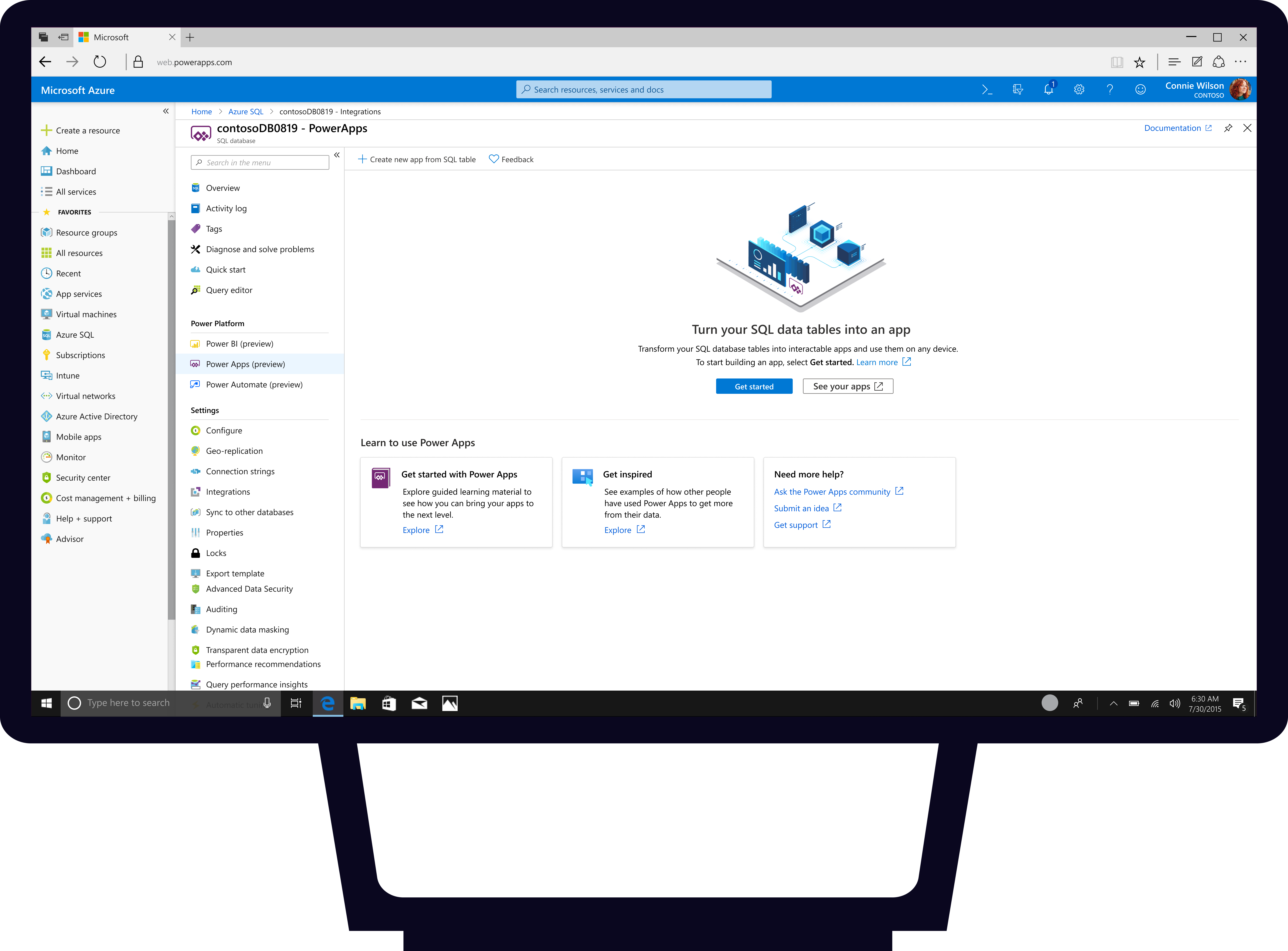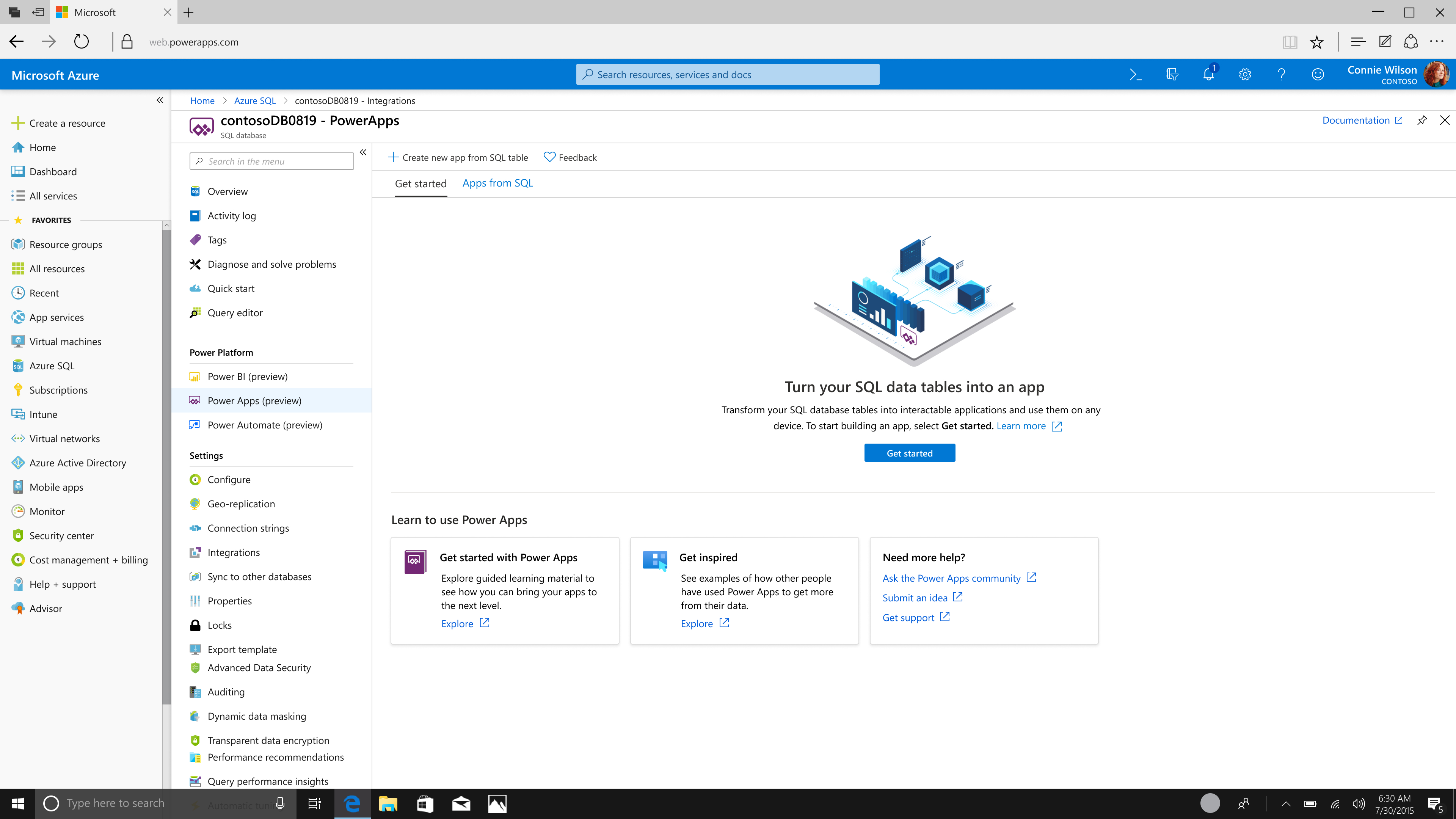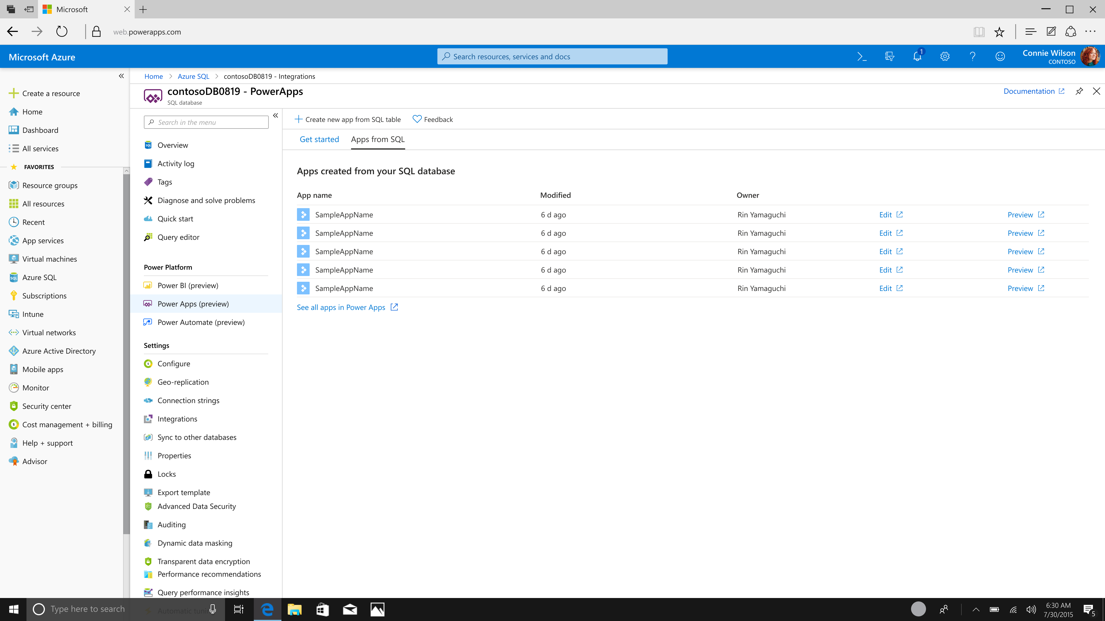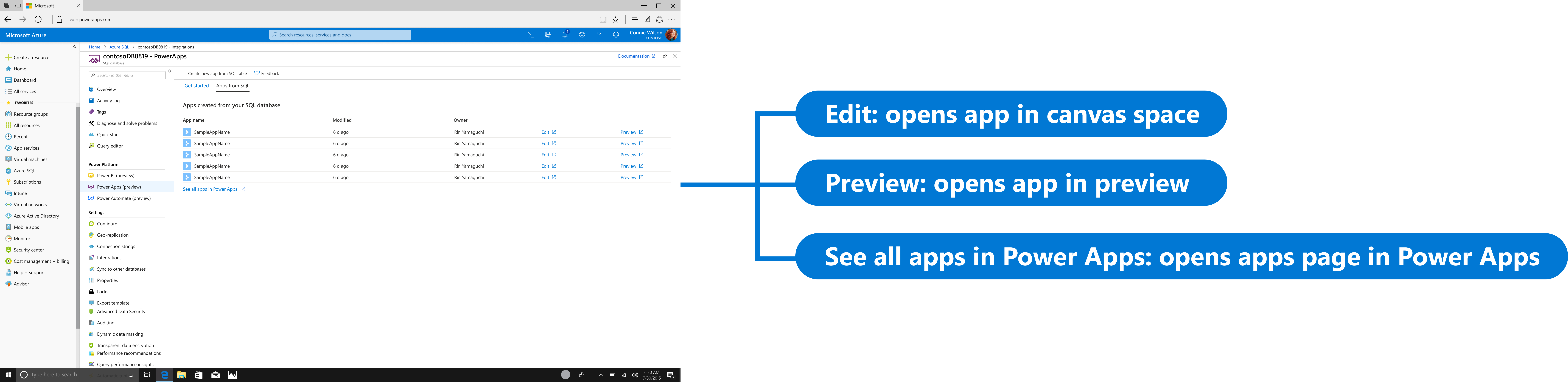 If you look below the command bar, you'll also see a new pivot. We were able to scope in the "Power Apps apps created with Azure SQL tables" into the project as well to help further integrate the two products.