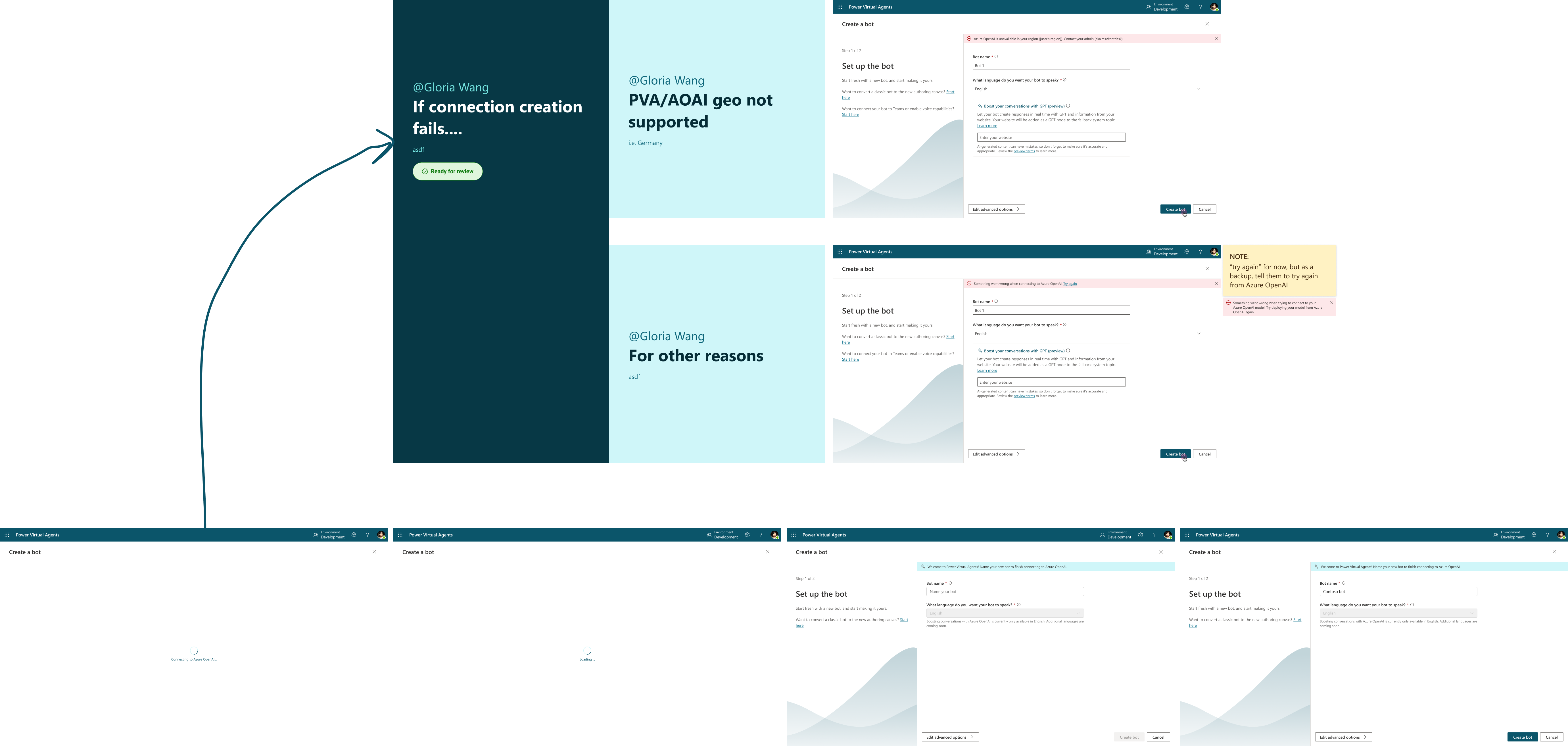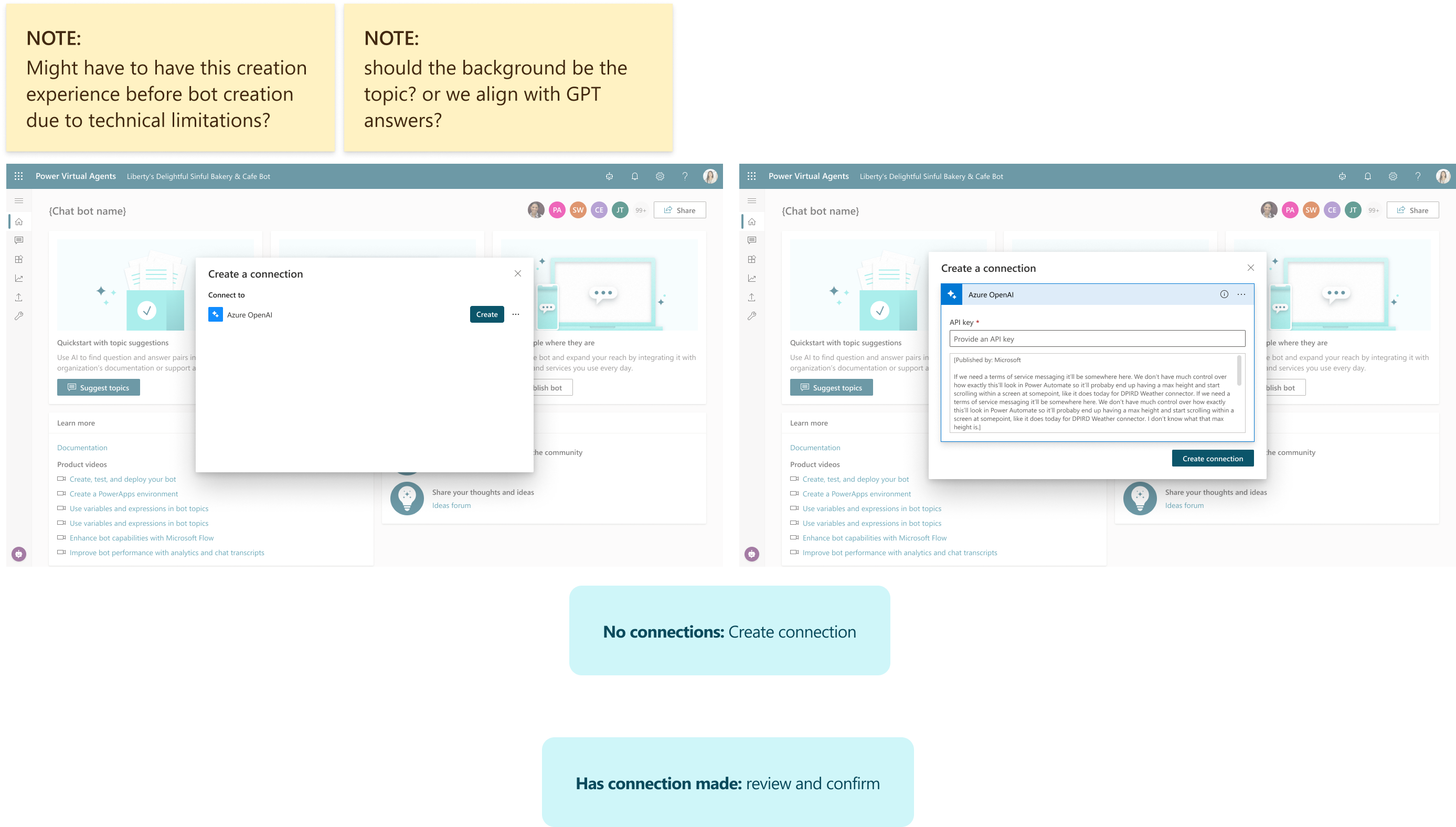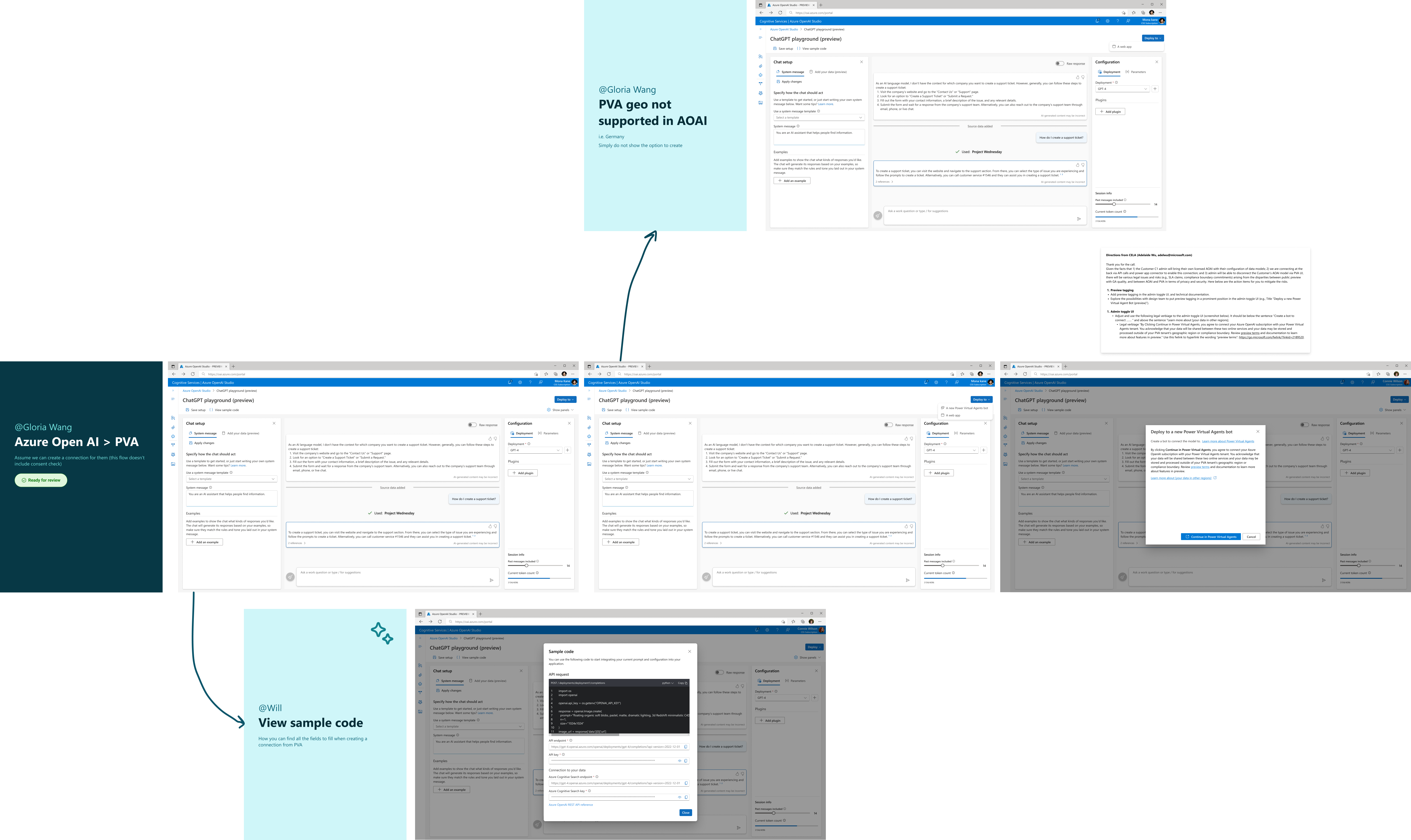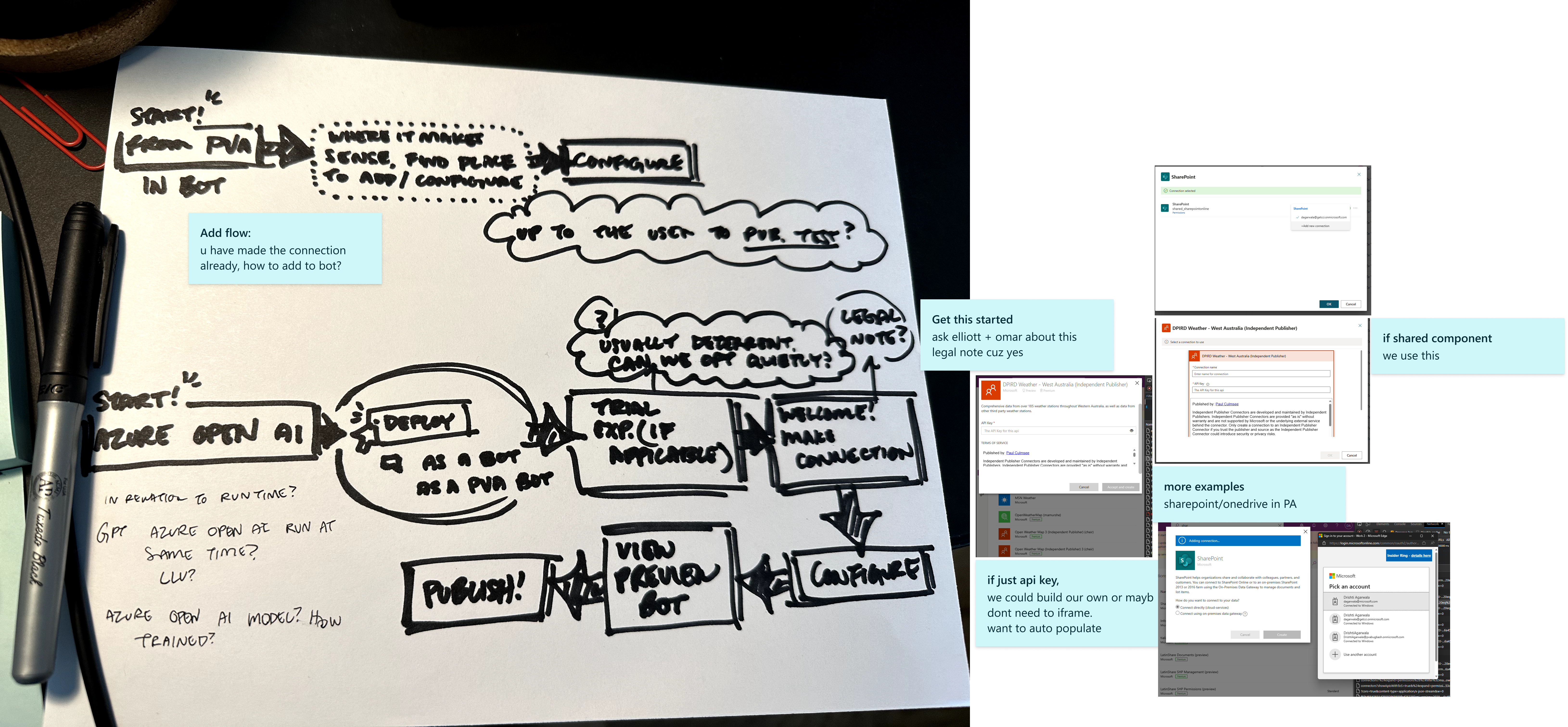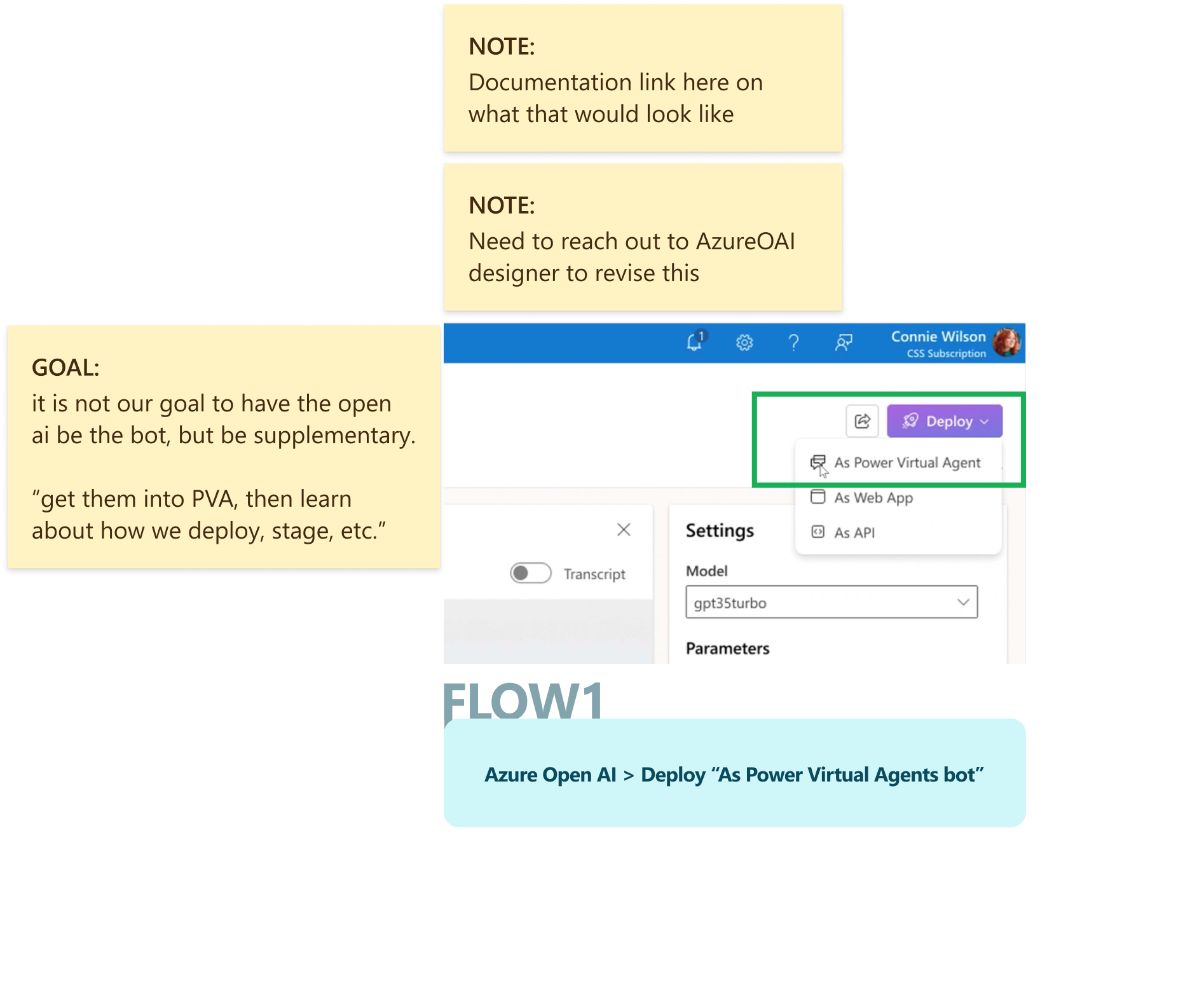 I ended up trying my best to consolidate these two steps, espcially since we're coming from Azure, for two main reasons: Less steps = π, but also, between iterations, it was really awkward to be prompted to "connect to Azure OpenAI" when the user was just there, and started this flow by "deploying to a Power Virtual Agents bot".