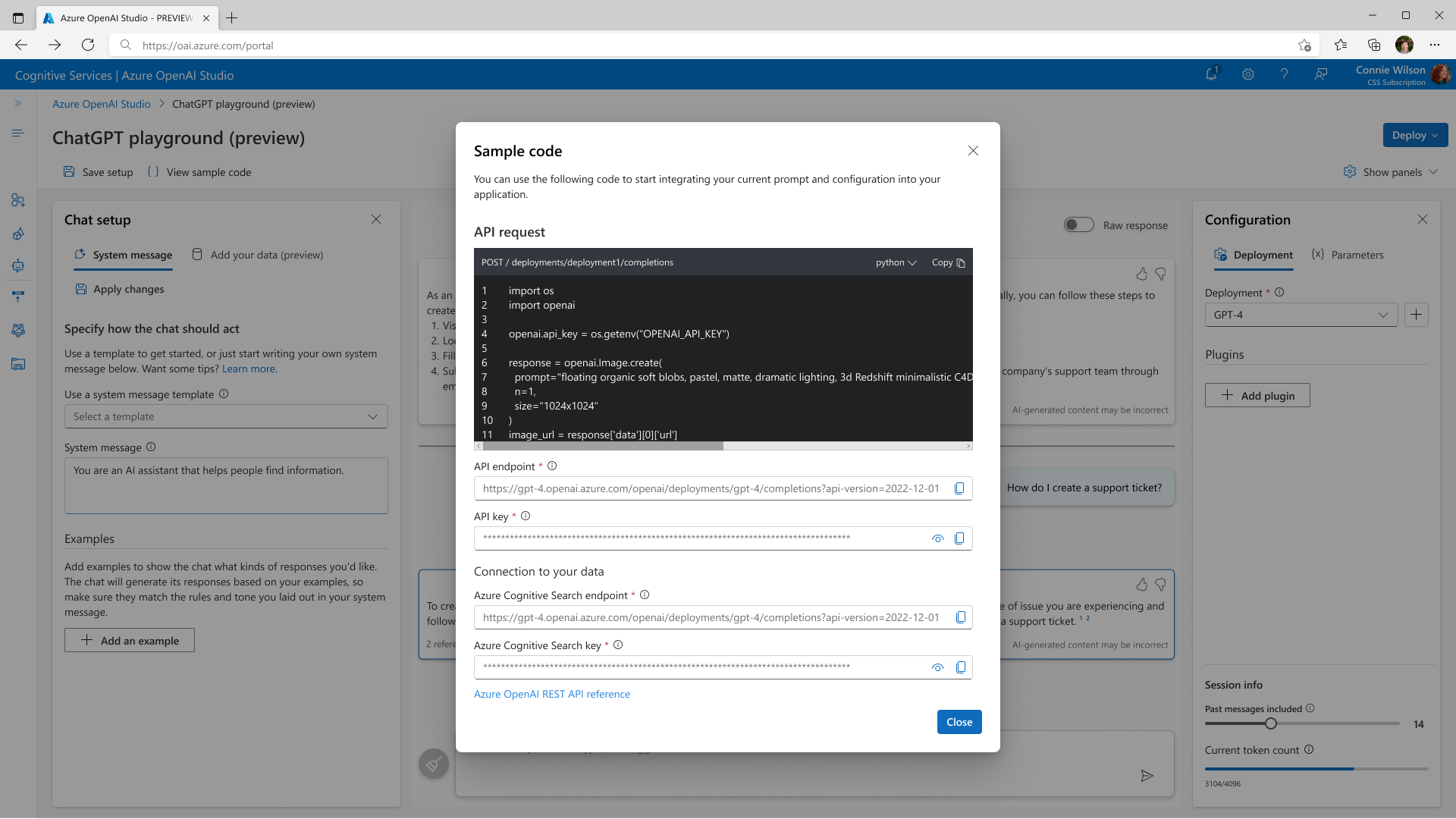 This modal is invoked from the "View sample code" command you'll see on the left, right under "ChatGPT playground (preview)".