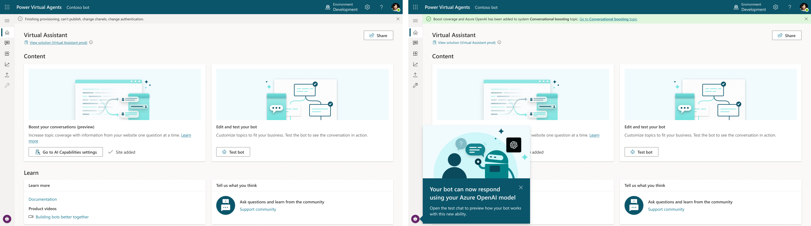 - To enable the ability to connect Azure OpenAI Studio to PVA from the authoring canvas.