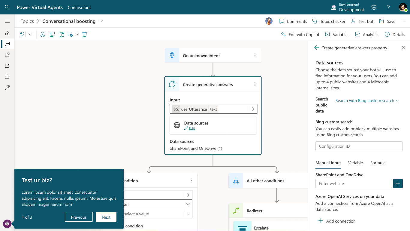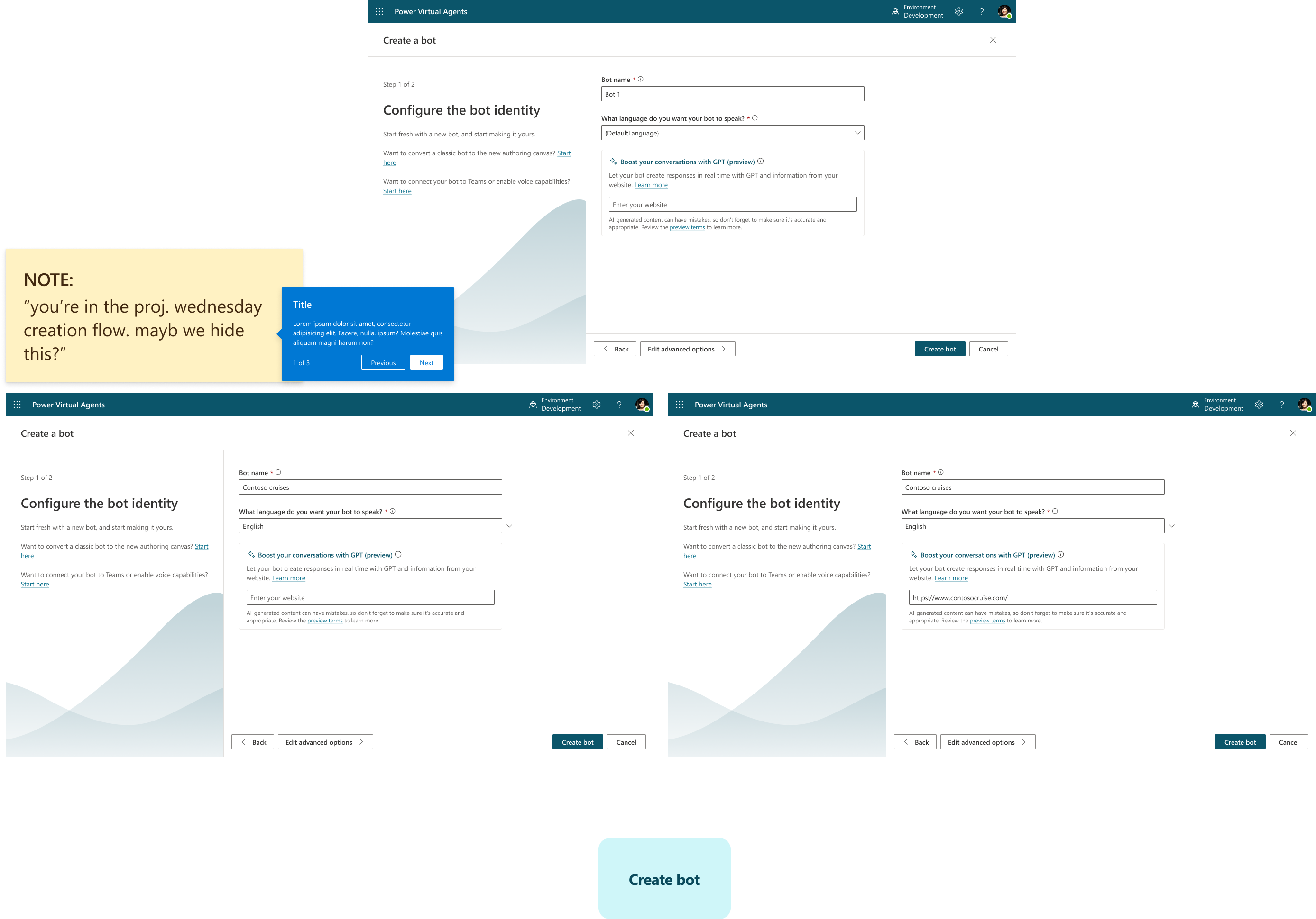 1. Content alignment on "Deploy", and "A Power Virtual Agent". With some pushing for "Publish", this became a terminology war, where I consulted our and Azure's content writer to find an unbiased middle-ground.